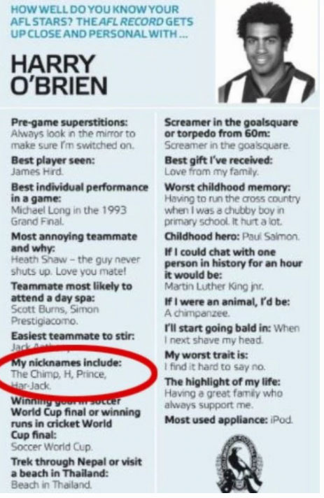 "The document is proof that the nickname did indeed exist and was widely known in the club. Some people are trying to use it as a means to discredit me, without realising that it's damning evidence that works against CFC and the AFL.