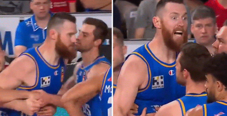 He furiously appealed to the referee after Taipans forward Lat Mayen elbowed Baynes in the neck as the pair jostled for a rebound.