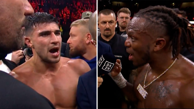English boxer Tommy Fury was handed victory over YouTuber KSI by majority decision on Sunday morning (AEDT), triggering an explosive argument between the two fighters in the ring.