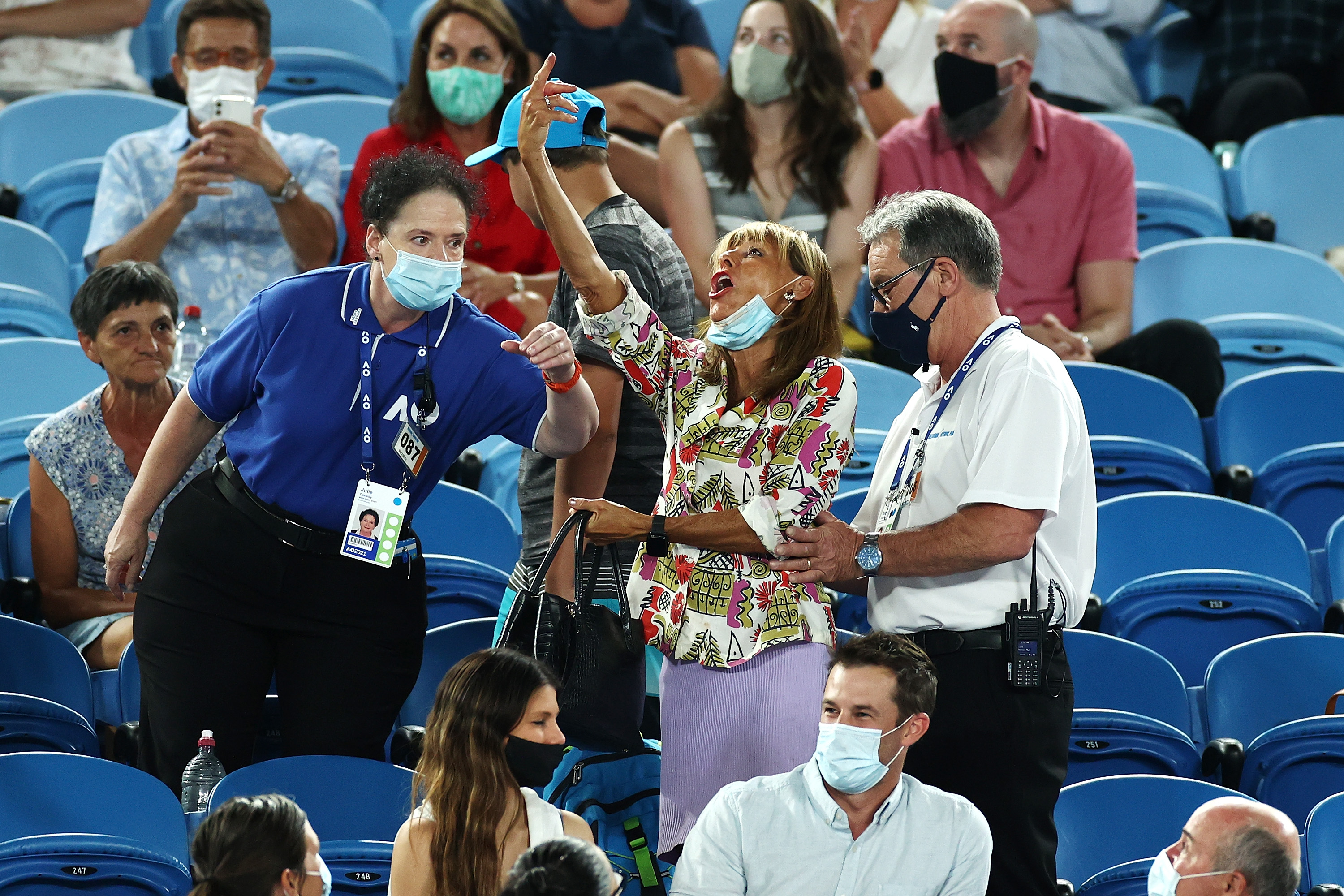 The spectator last night ejected from Rod Laver Arena for heckling Rafael Nadal has defended her behaviour in a staggering radio interview.