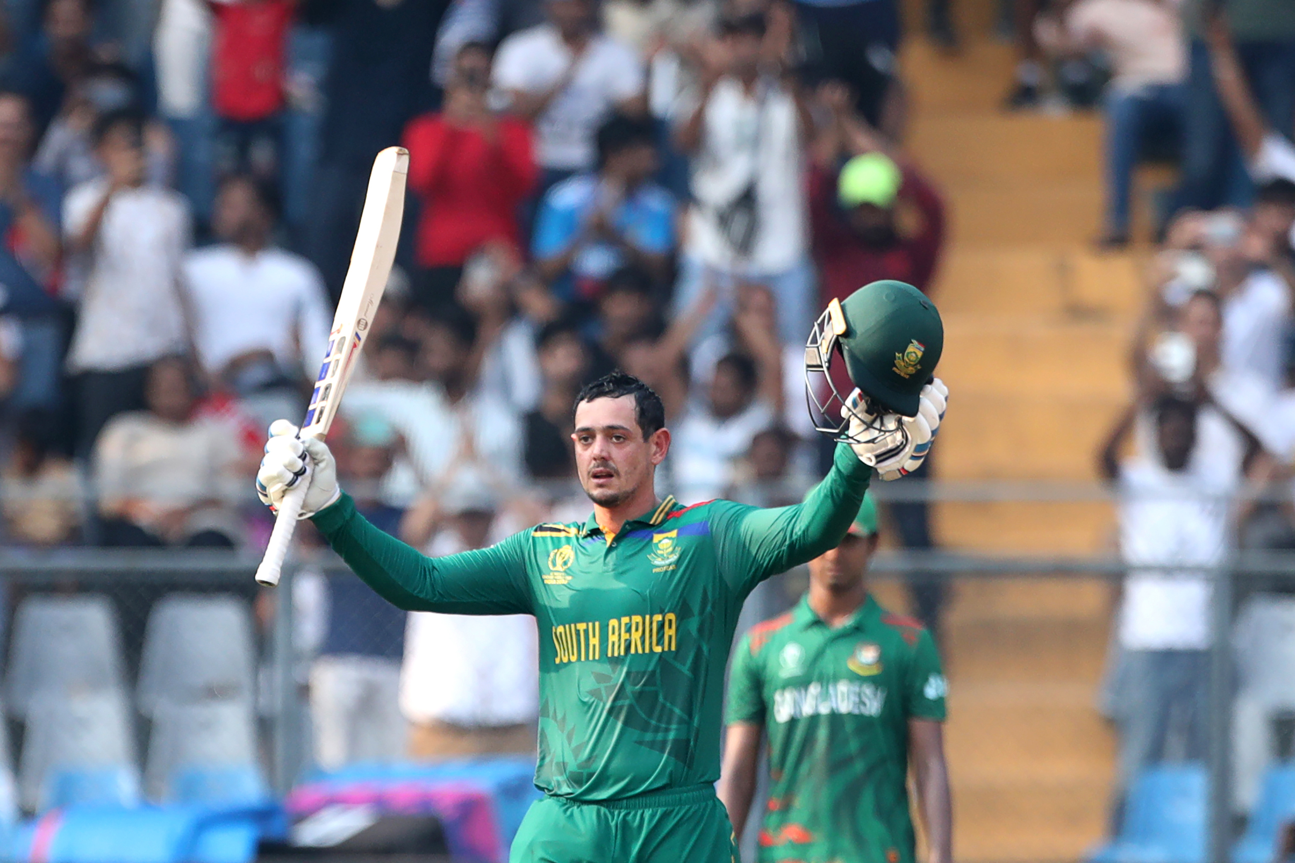 Quinton de Kock blasted his second-highest ODI score as South Africa beat Bangladesh by 149 runs at the Cricket World Cup.