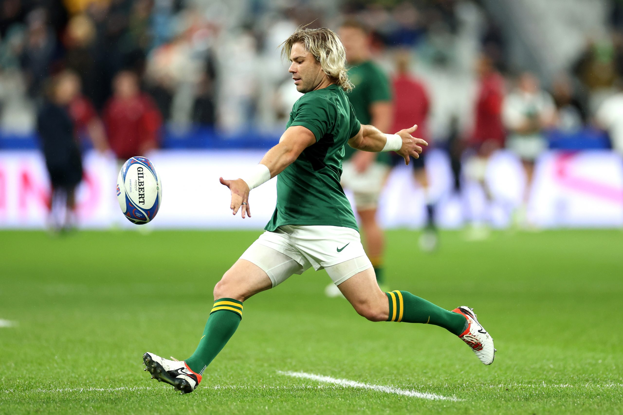 SOUTH AFRICA FINAL LINE-UP: Damian Willemse, Kurt-Lee Arendse, Jesse Kriel, Damian de Allende, Cheslin Kolbe, Handre Pollard, Faf de Klerk; Duane Vermeulen, Pieter-Steph du Toit, Siya Kolisi (captain), Franco Mostert, Eben Etzebeth, Frans Malherbe, Bongi Mbonambi, Steven Kitshoff. Reserves: Deon Fourie, Ox Nche, Trevor Nyakane, Jean Kleyn, RG Snyman, Kwagga Smith, Jasper Wiese, Willie le Roux.