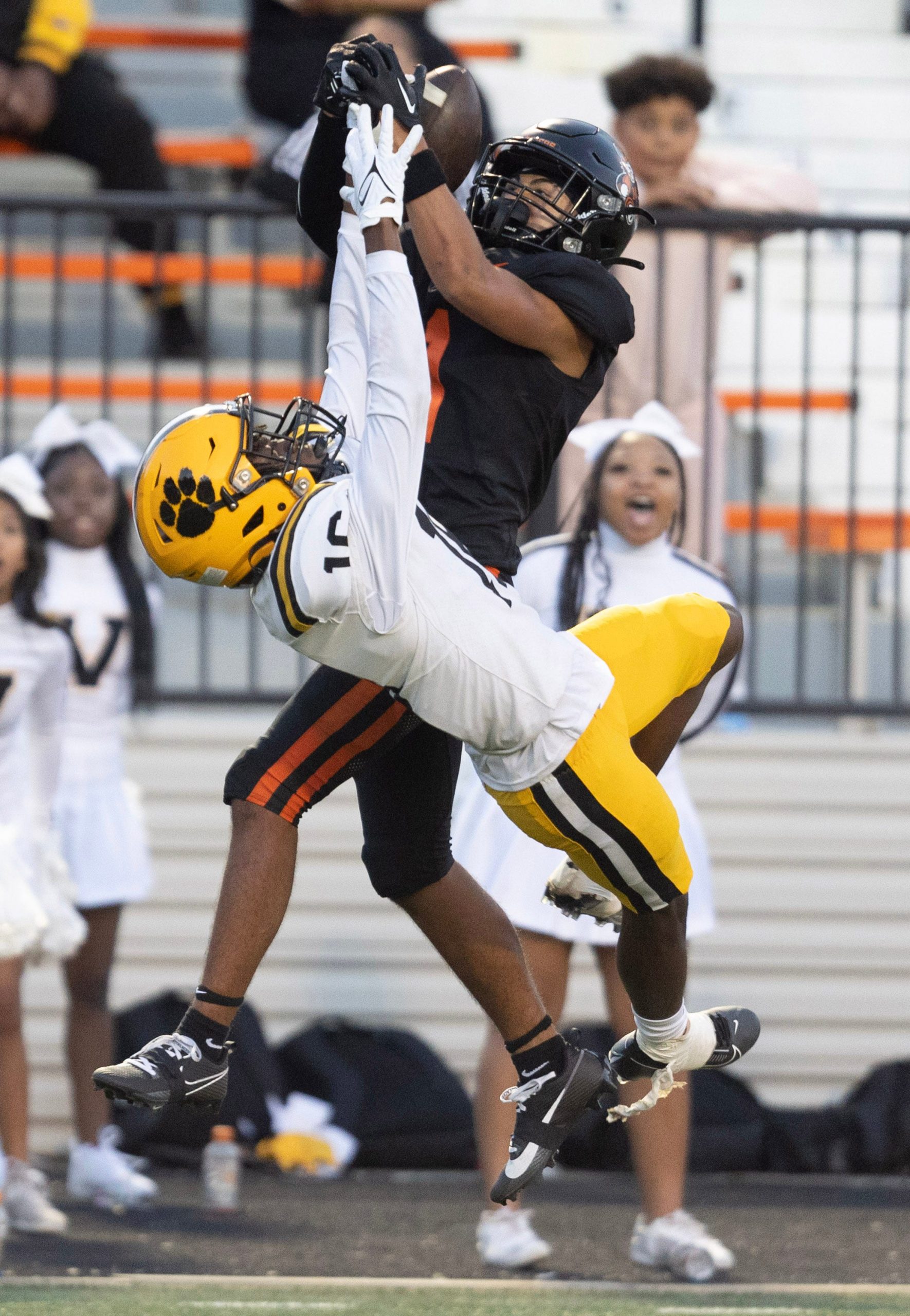 Valdosta’s Mark McCoggie breaks up a pass intended for Massillon’s Braylyn Toles in the first half at Massillon against Valdosta Georgia at Paul Brown Tiger Stadium Friday, August 18, 2023.