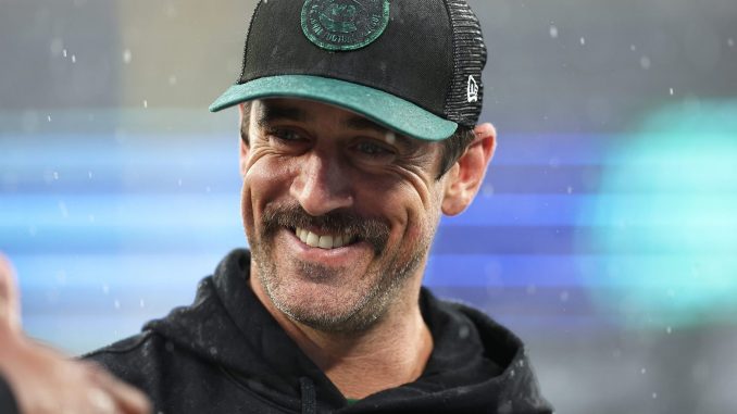Jets' Aaron Rodgers drops back and puts weight on injured leg during warmups before game vs Giants October 29, 2023 admin Uncategorized 0