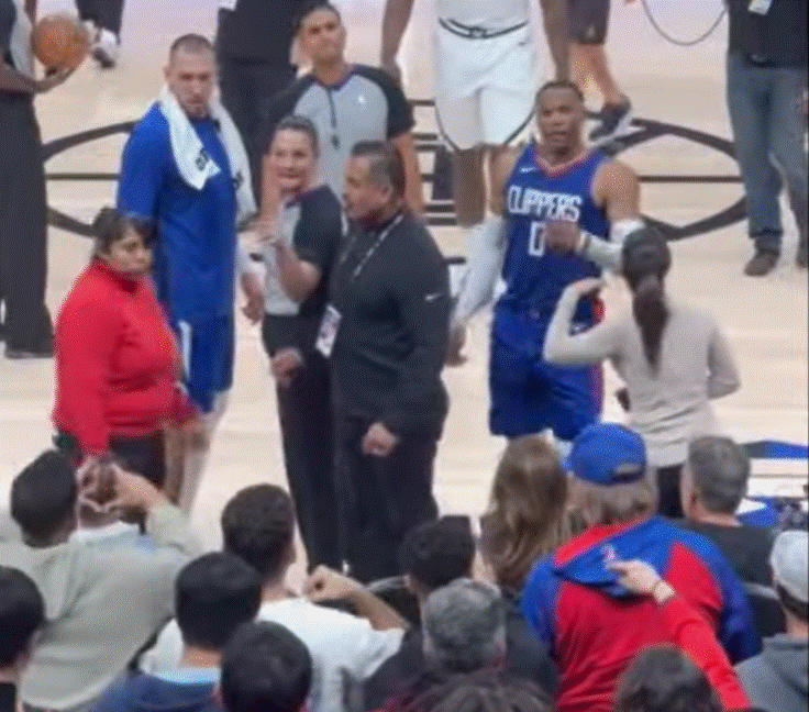 Two security personnel came on court while former Clipper DeAndre Jordan appeared to encourage an agitated Westbrook to move away from the situation.