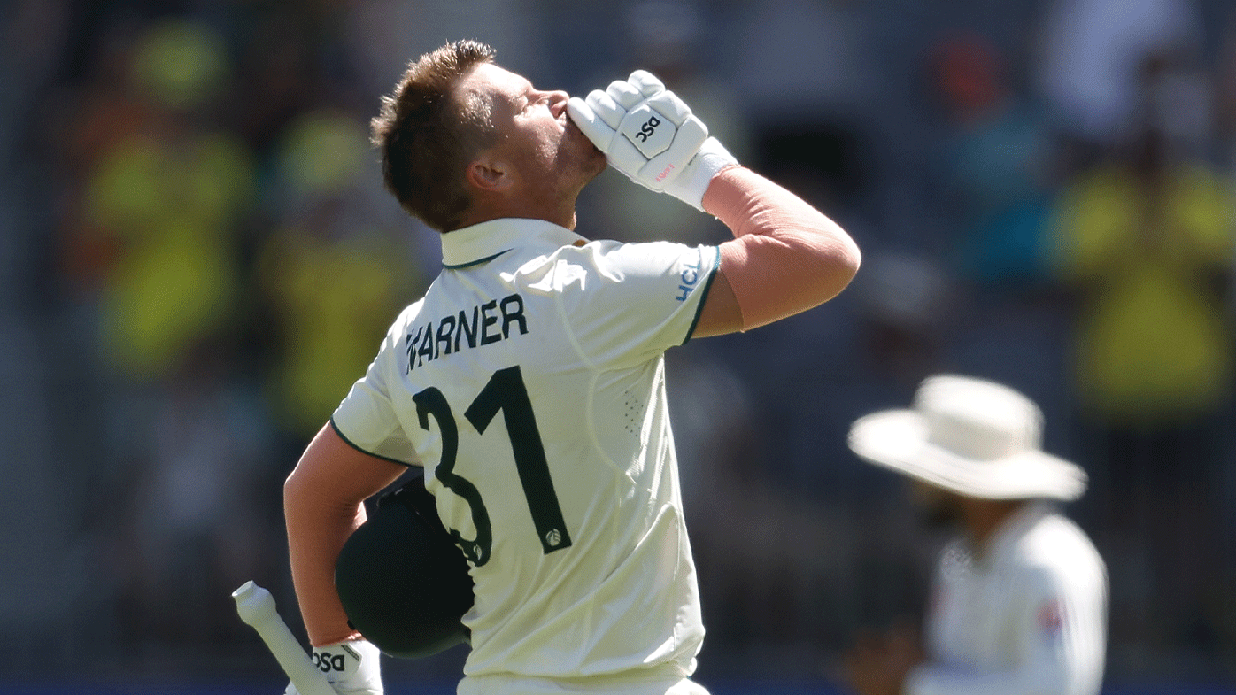That pressure valve released for a relative moment in the seconds after claiming his century, when Warner flung his helmet off and put his finger to his lips, in what most fans assumed was a message to his critics, namely former teammate Mitchell Johnson, who wrote a critical piece on Warner's place in the team ahead of the first Test.