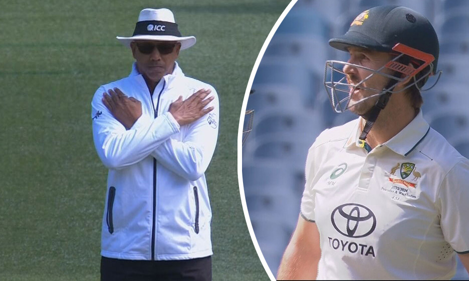 Australian star Mitchell Marsh survived two close calls in a row on the second day of the Boxing Day Test, with a Pakistan legend slamming a double "shocker" from umpire Joel Wilson.