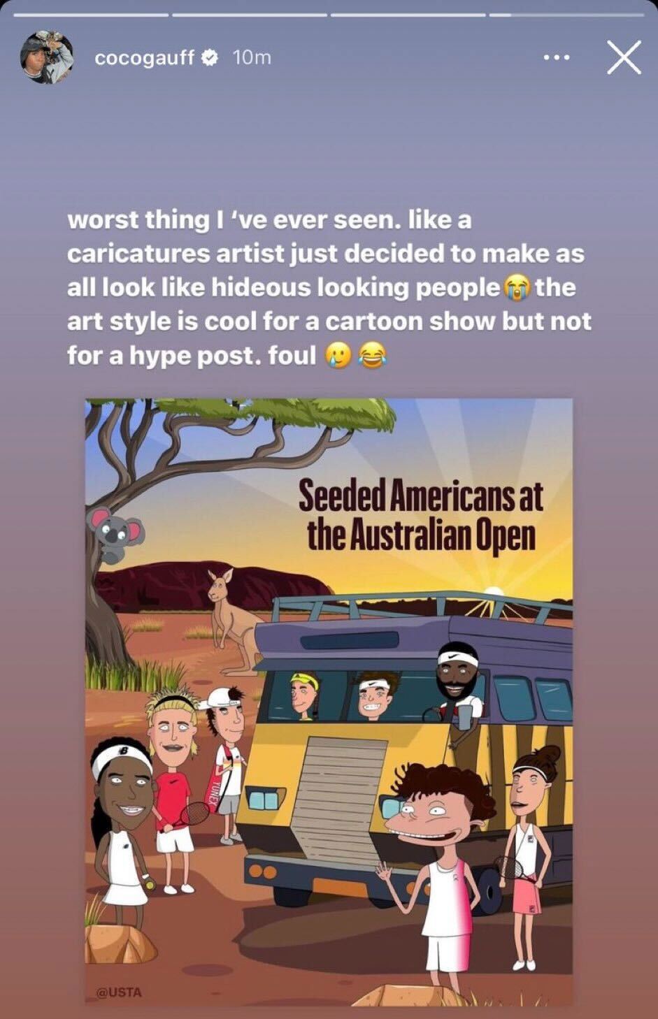 In a since-deleted social media post, Gauff criticised a caricature of herself that was used as promotional material by the USTA, labelling it as "hideous" and "foul".