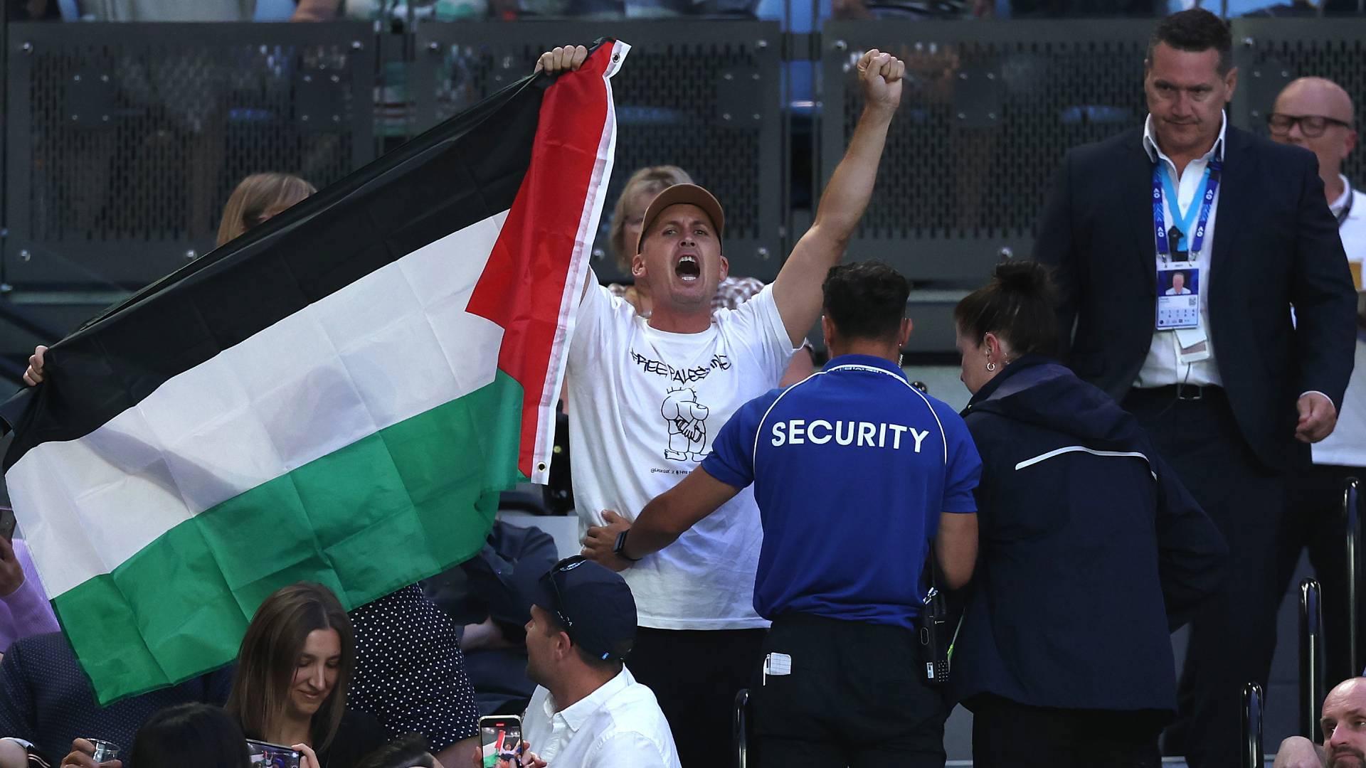 Mid-way during the second set, the member of the crowd began to yell out "free Palestine" prior to Zheng's serve, with the official quickly bringing a halt to proceedings.