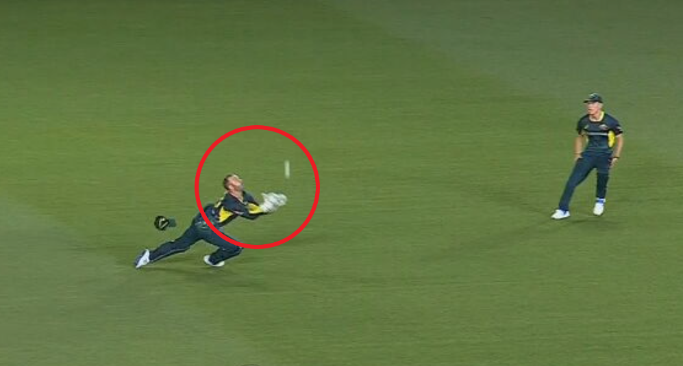 The ball was skied into the air with Wade running past the inner circle and taking a diving catch as fine leg Nathan Ellis let the keeper do his work.