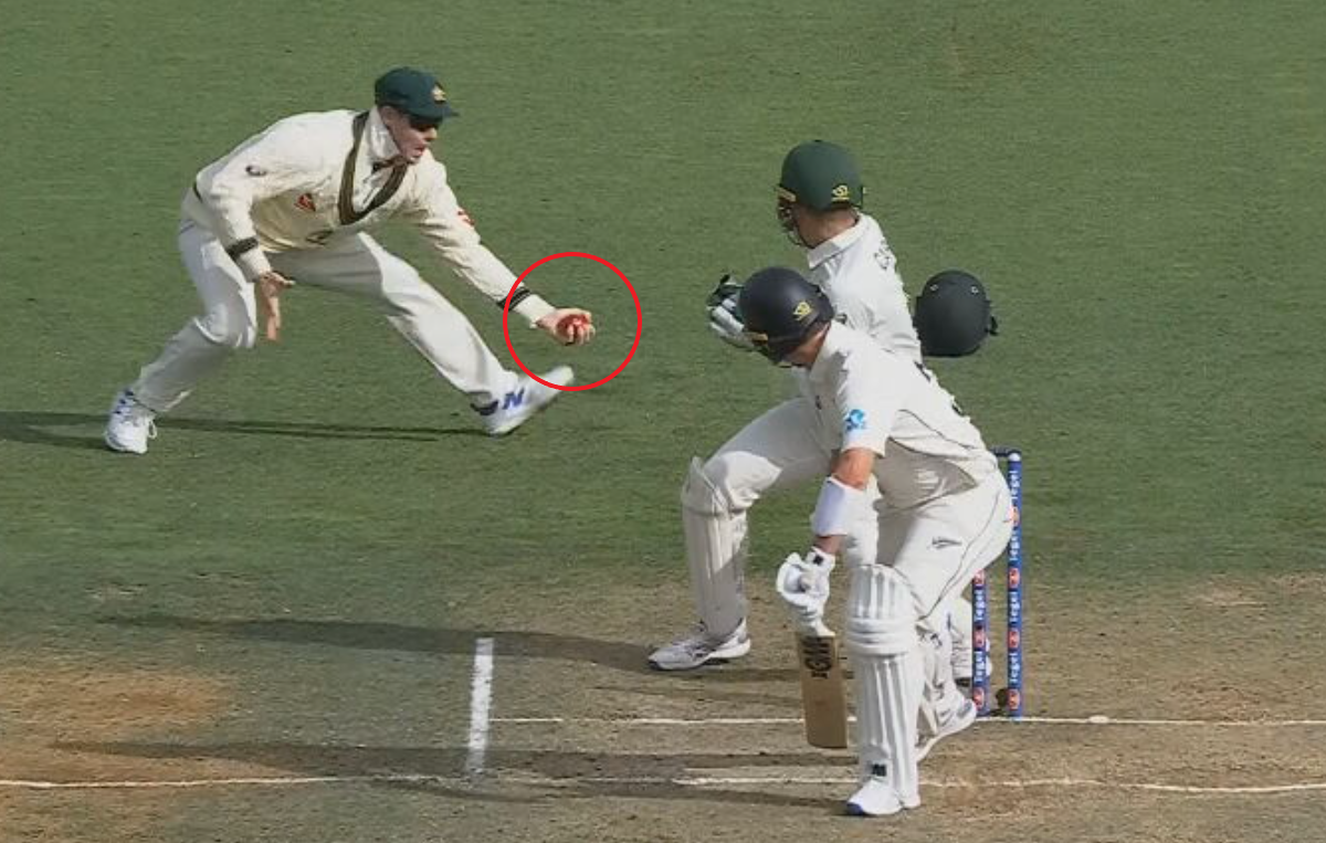 Steve Smith's stunning catch has put the first Test between Australia and New Zealand in a precarious position.