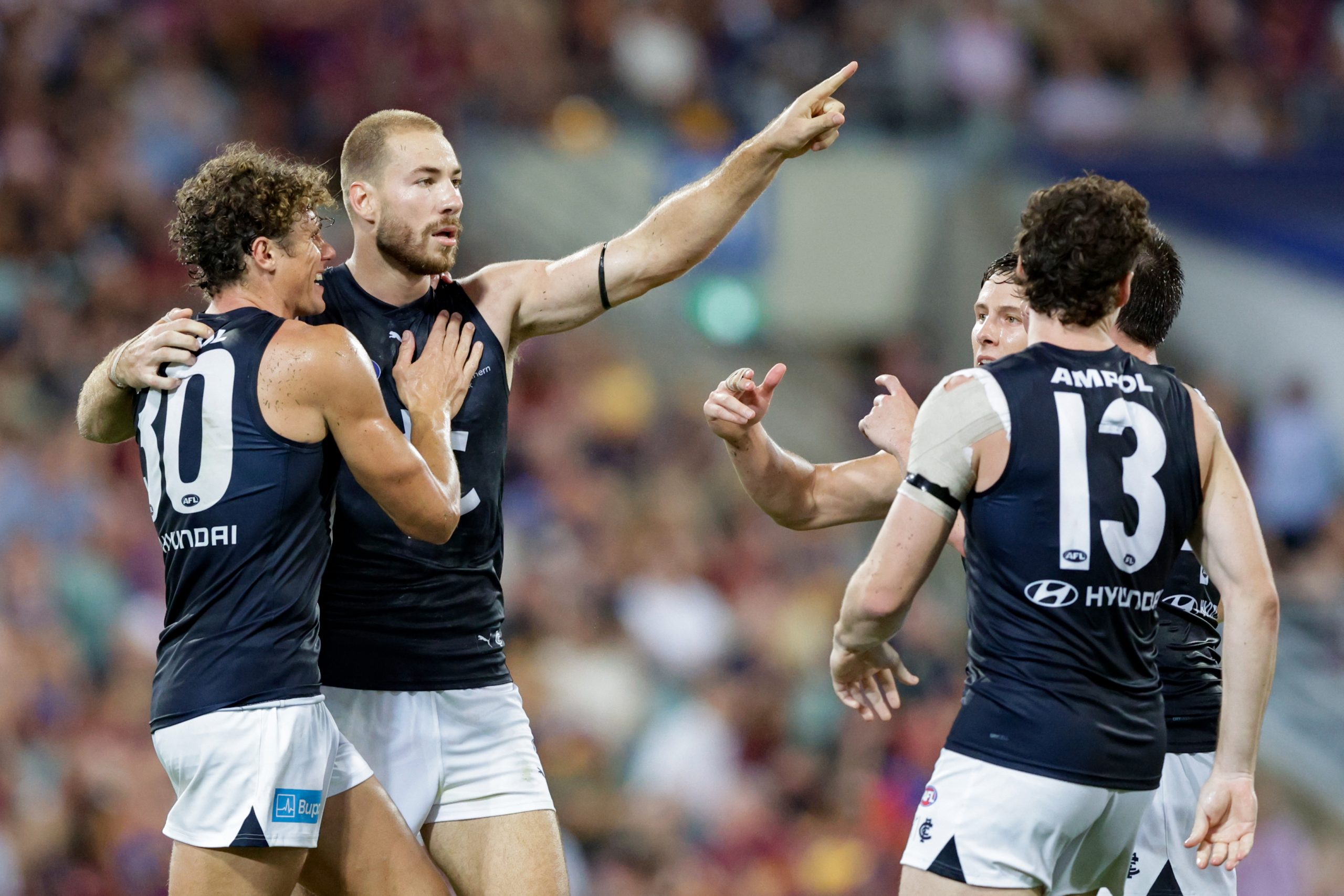 McKay's teammates, forward partner Charlie Curnow and defender Nic Newman, rushed to his defence after his winning goal on Friday night.