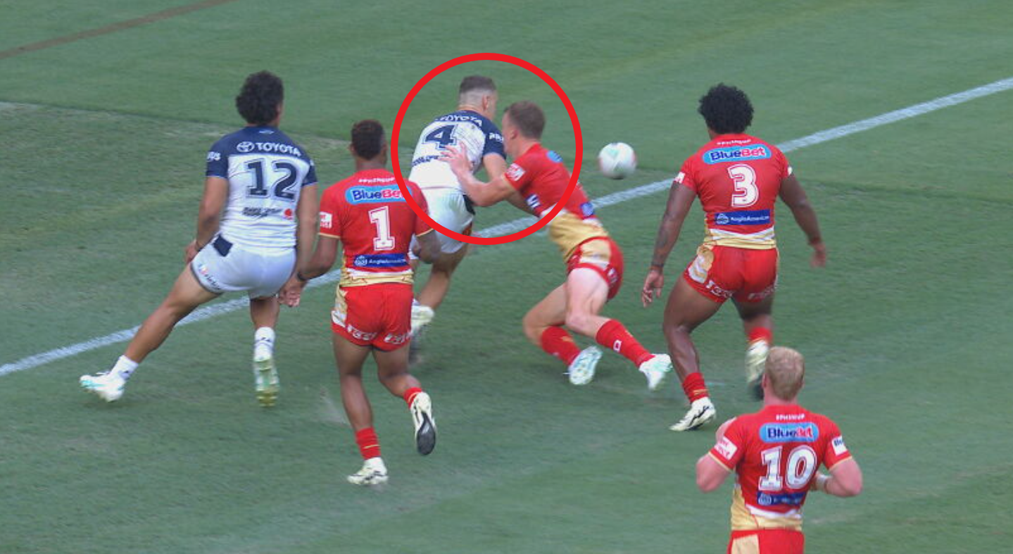 Bostock nudged Laybutt in the in goal area, but only after the ball had taken a sharp bounce away from the Cowboys attackers.