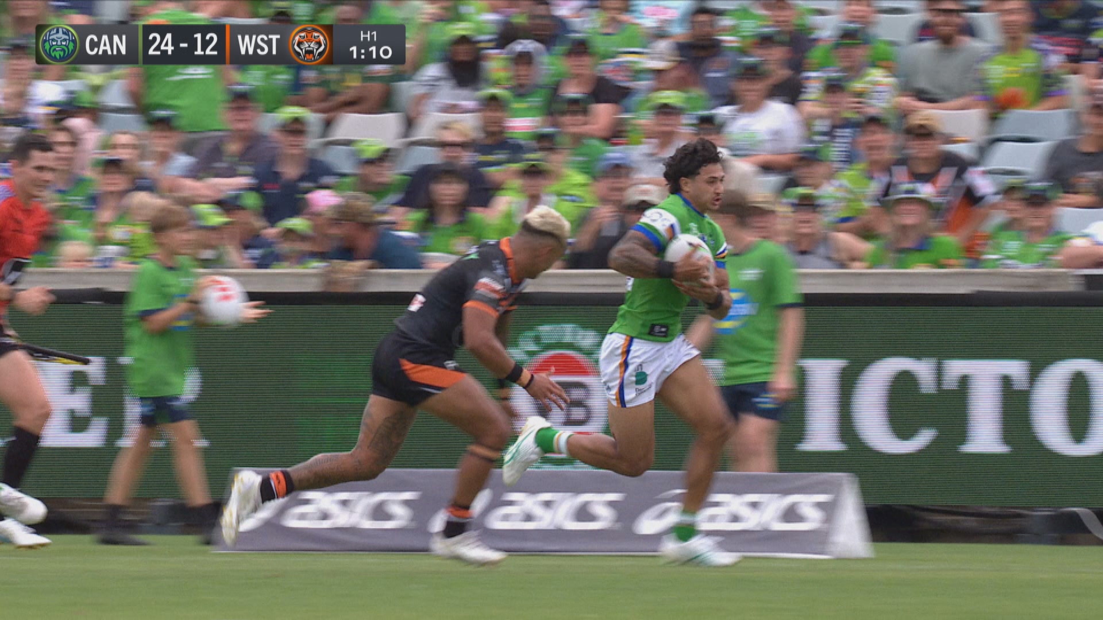 The Tigers hit back through Samuela Fainu and Apisai Koroisau but the Raiders dominated the final exchanges to make it 24-12 at half-time. Jordan Rapana and Savage were the try-scorers.