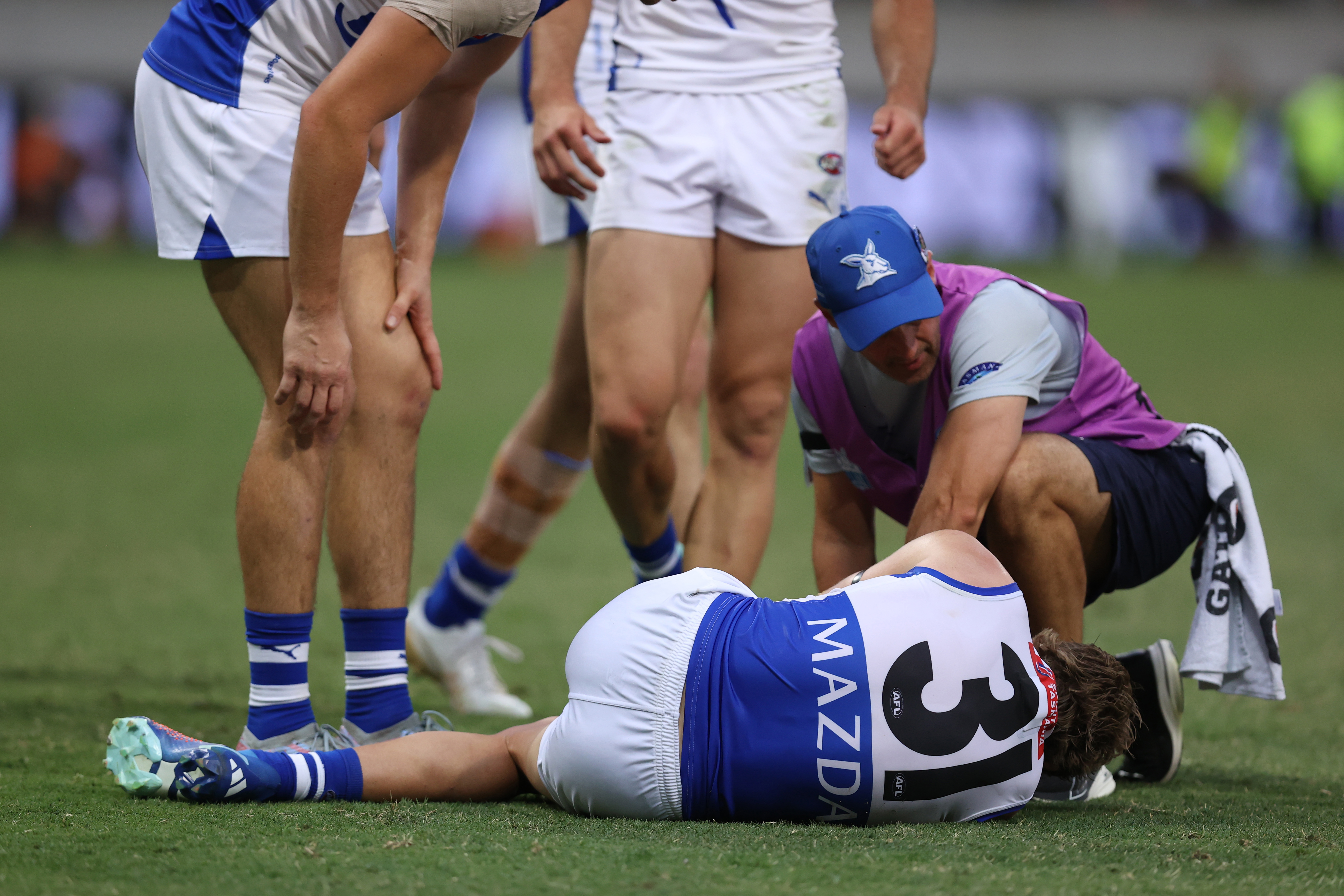 North Melbourne young gun Josh Goater has been left "distraught" after suffering a season-ending Achilles injury in the side's loss to GWS.