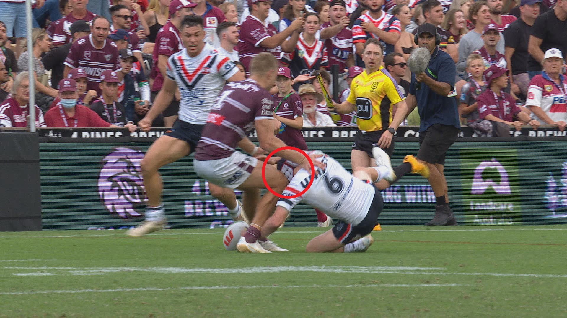 Tom Trbojevic in his attempt to challenge, collected Keary who stayed down for a significant period of time. The Manly fullback signalled to the bench straight away with his hand up.
