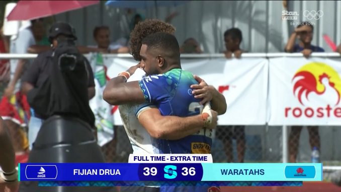 Kemu Valetini – the older brother of Wallabies star Rob – was the Fijian hero on Saturday as he snapped a drop goal in traffic to give the Drua a 39-36 Super Rugby Pacific win over NSW in Lautoka.