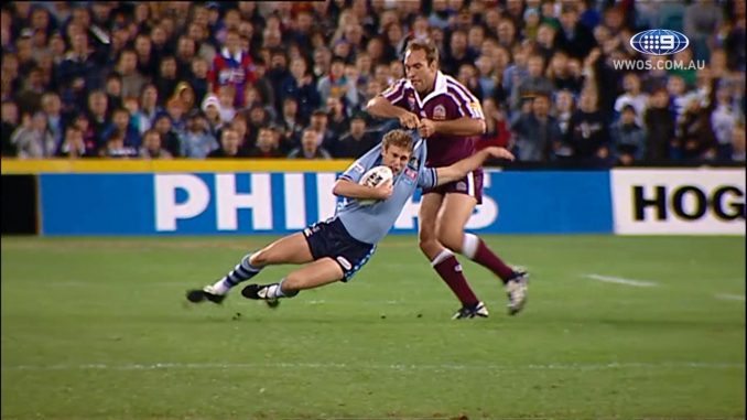 Among Tallis' iconic moments was the time he manhandled into touch NSW fullback Brett Hodgson in game three of the 2002 State of Origin series. In the famous words of legendary Nine caller Ray Warren, Hodgson was "lassoed by Tallis".