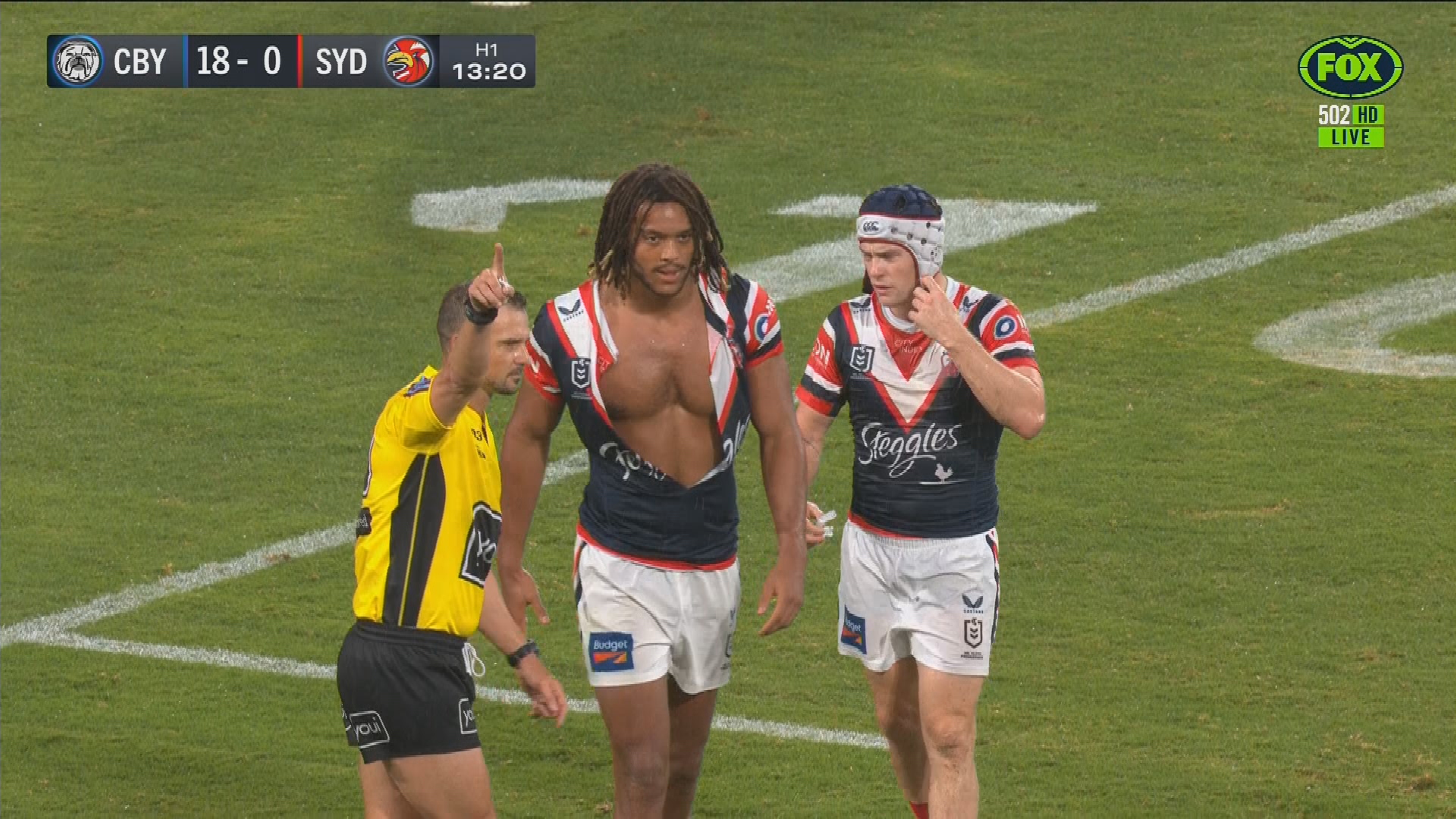 Young's send off came with the Roosters already down two men following head knocks to Sam Walker and James Tedesco.
