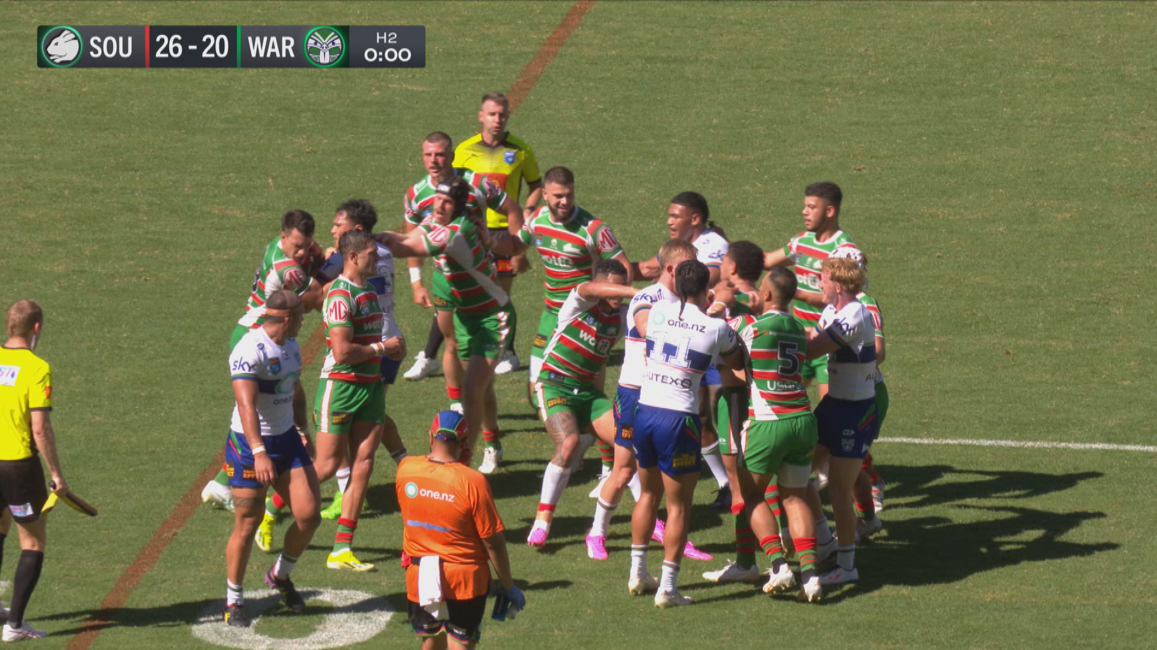 As the referee attempted to control proceedings, Moala Graham-Taufa was marched to the sin bin for throwing a punch.