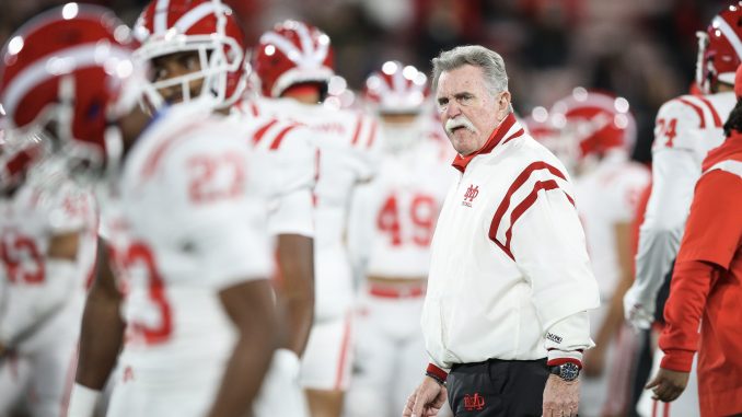 PASADENA, CALIFORNIA – NOVEMBER 25: Head coach Bruce Rollinson of the Mater Dei Monarchs looks on as the team during warm ups ahead of the game against the St. John Bosco Braves during the 2022 CIF-SS-Ford Division 1 Football Championship at Rose Bowl Stadium on November 25, 2022 in Pasadena, California. (Photo by Meg Oliphant/Getty Images)