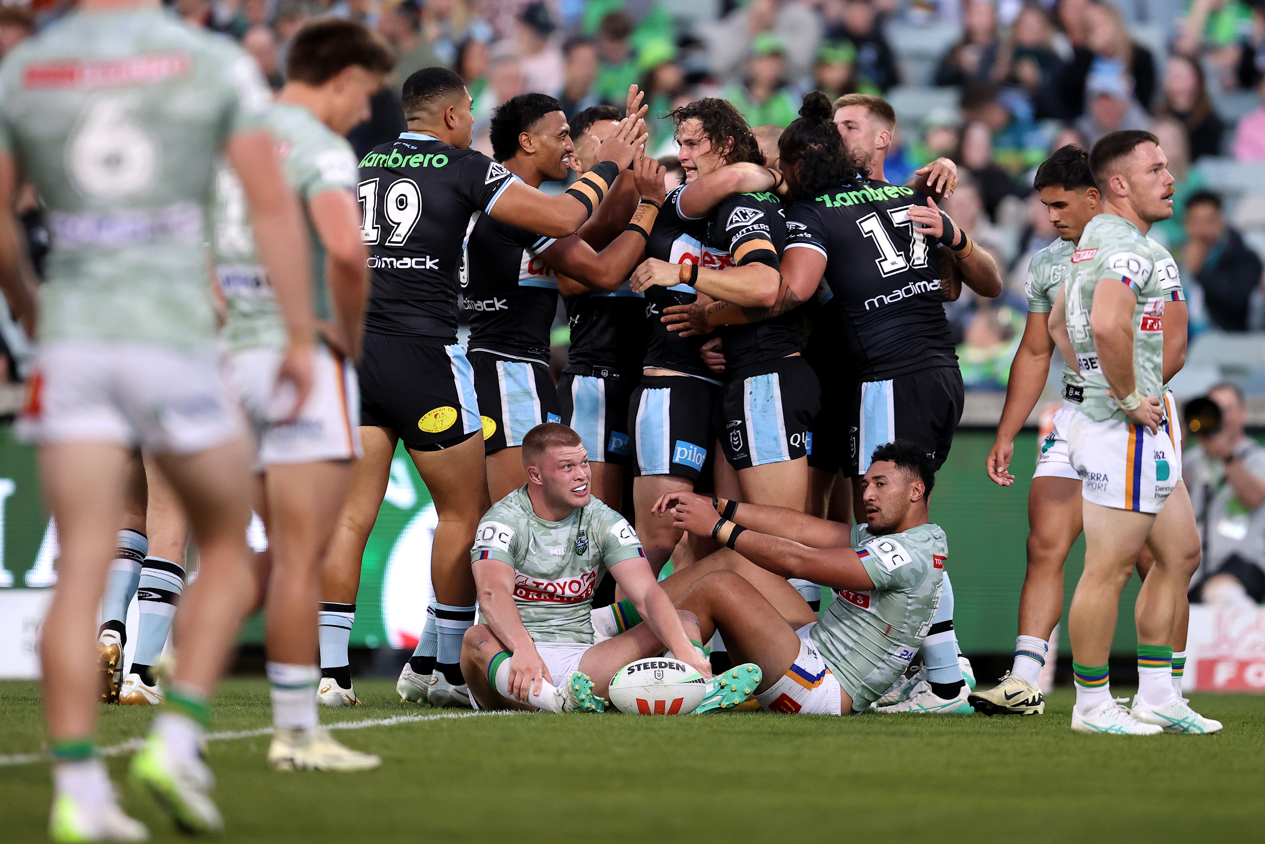 The Sharks asserted their dominance earlier in the match, taking advantage of the Raiders' young backline, with the club playing without a large portion of its spine.