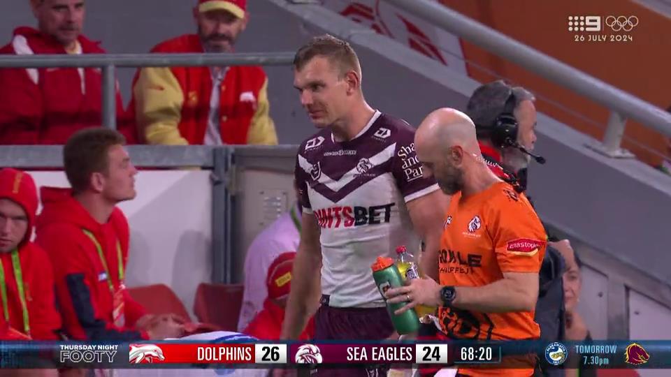 Manly and NSW fans will be sweating on the fitness of Tom Trbojevic after the star fullback left the field during the Sea Eagles' 30-24 loss to the Dolphins.