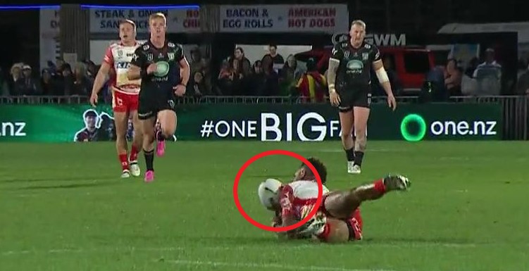After struggling to break outside of their own half, a bomb kick by the Warriors rattled Tabuai-Fidow who grassed the ball just outside of the Dolphins 20.
