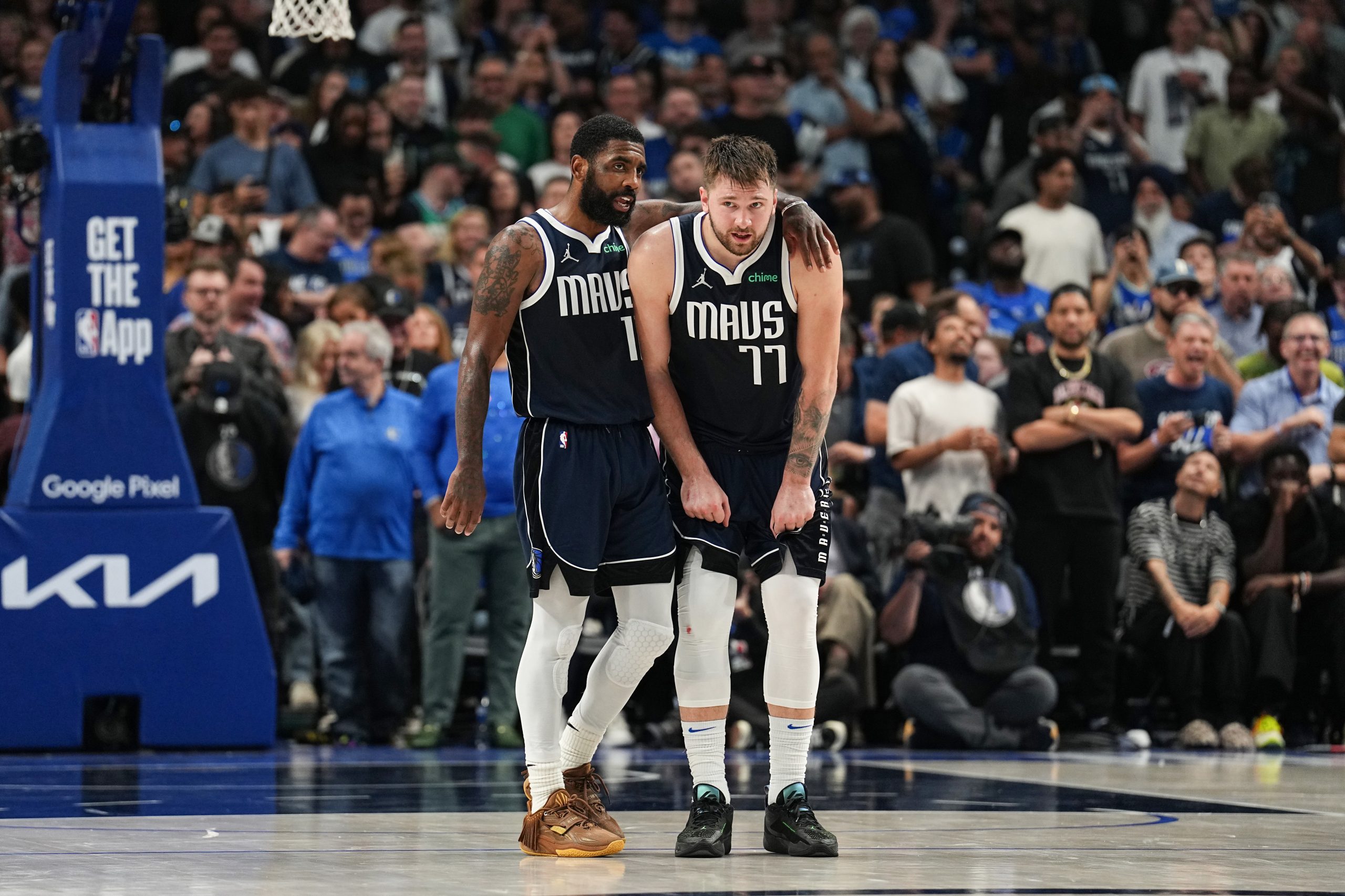 Luka Doncic and Kyrie Irving combined to help the Dallas Mavericks mount a 3-0 lead in the western conference finals, putting them one win away from the NBA finals.
