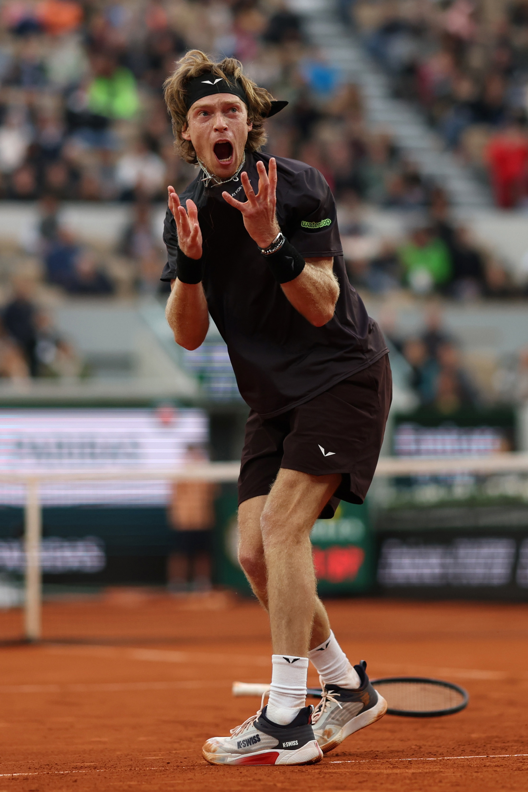 Rublev, the biggest men's casualty so far on another rain-drenched day at Roland Garros, lost control in the shock straight sets loss, throwing tantrums every set he was out there while smashing his knee with his own racquet on top of berating his coaching box and leaving a dent in the courtside bench after booting it.