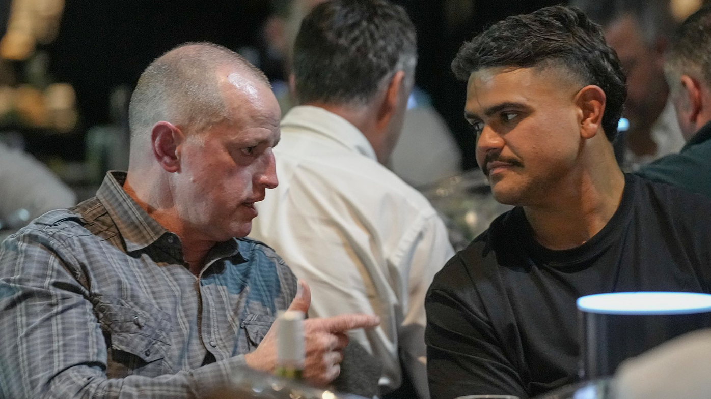 Mitchell was pictured in conversation with Blues coach Michael Maguire at South Sydney's 2014 premiership reunion with the superstar posting the photo to his Instagram story captioning it "we on?"