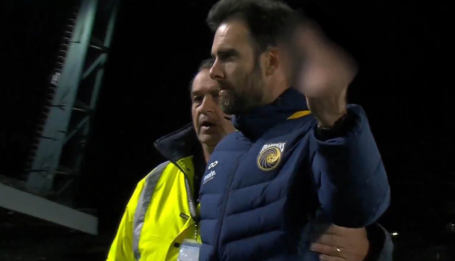 An A League official then tried to usher Schofield off the field before he gestured towards the Sydney FC bench and then gave the middle finger to the live TV broadcast.