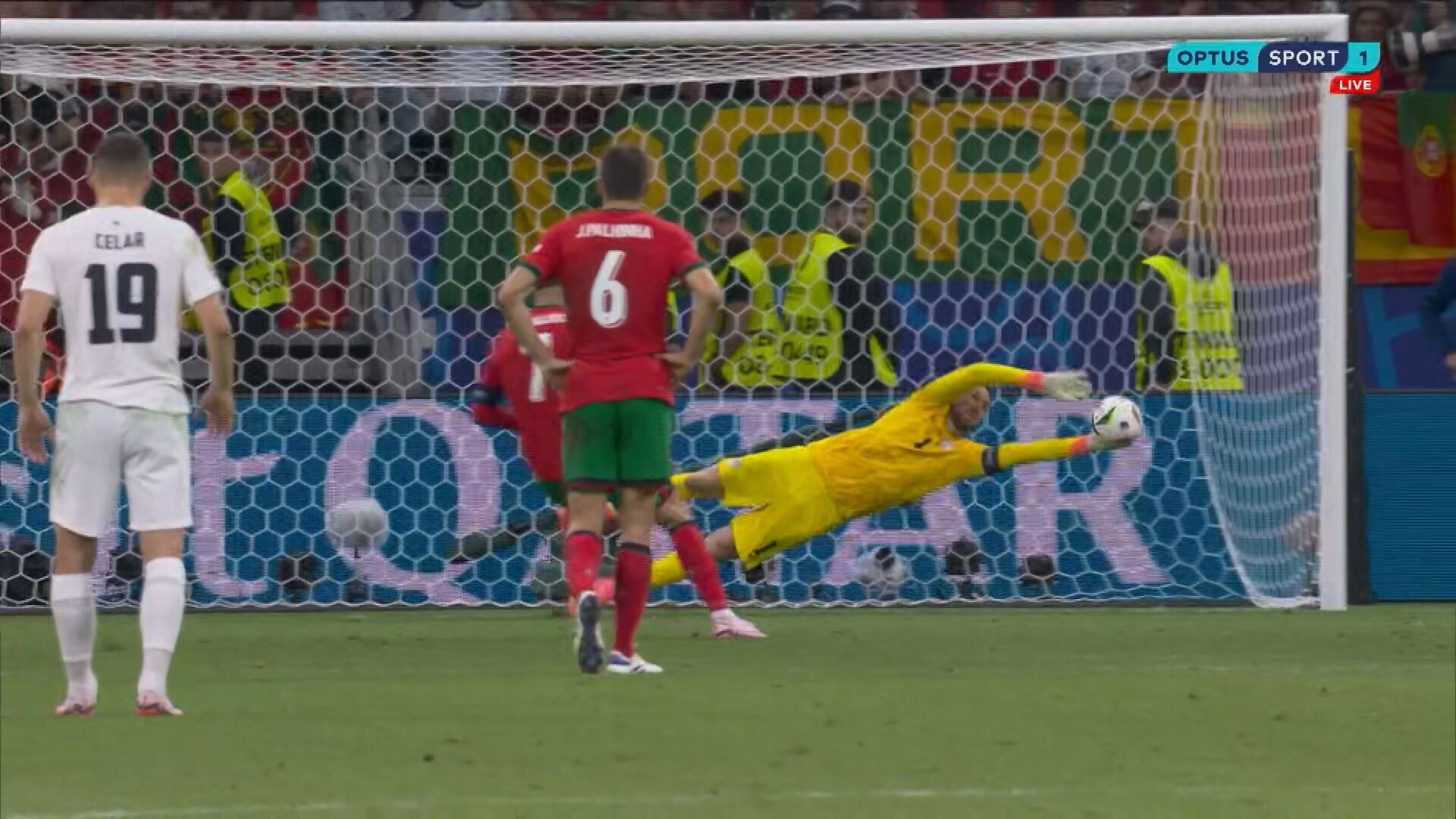 When they went to penalties, Ronaldo scored his and Portugal's first, and teammate Diogo Costa saved all three of Slovenia's kicks, from Josip Ilicic, Jure Balkovec and Benjamin Verbič.