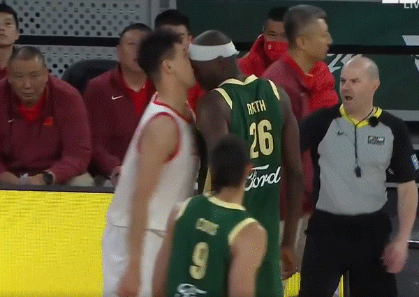Things got heated in the fourth quarter when Aussie NBA player Duop Reath appeared to headbutt on Chinese big man Runwang Du.