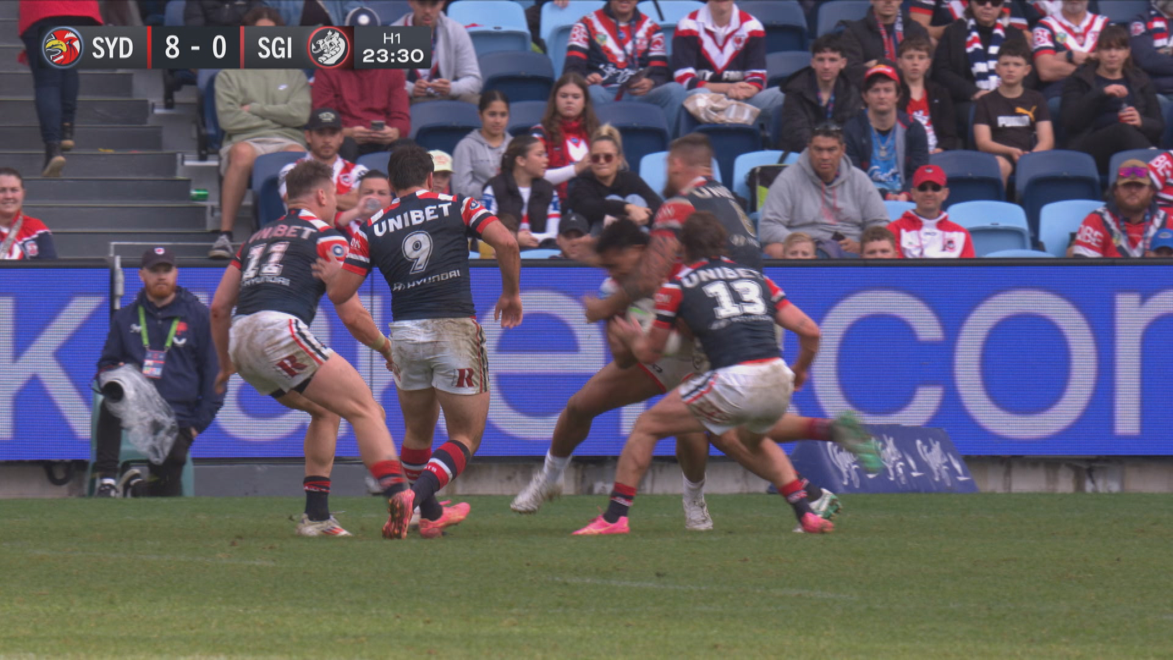 Jaydn Su'A was placed on report for a late hit on Brandon Smith, allowing the Roosters to extend their lead with a simple penalty goal for Walker.