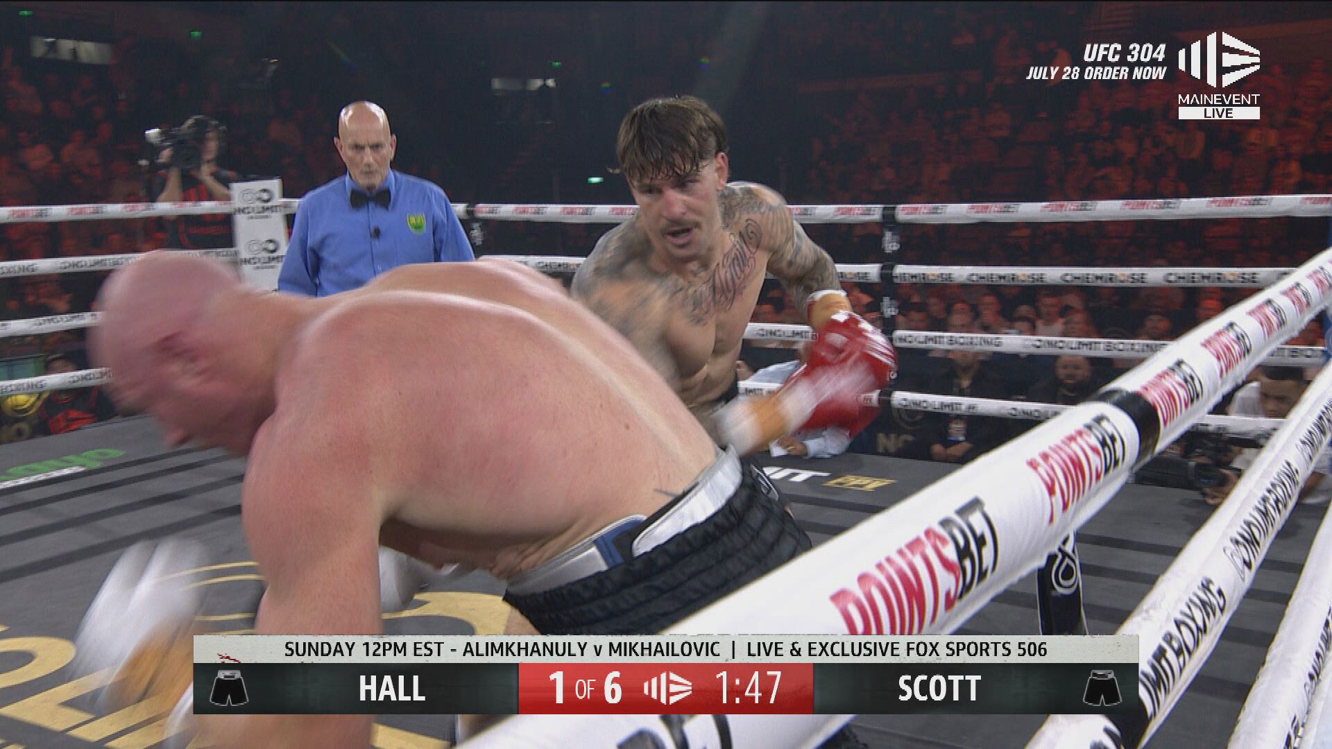 Moments later, Scott went in for the kill and ended Hall's night then and there, in just under three minutes.