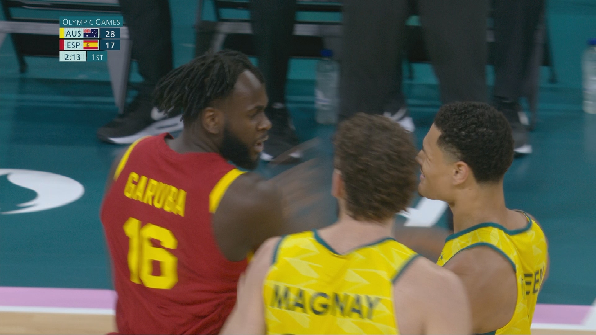 Spain and the Boomers have been involved in a heated exchange during the latter's win in their opening clash at Paris 2024.
