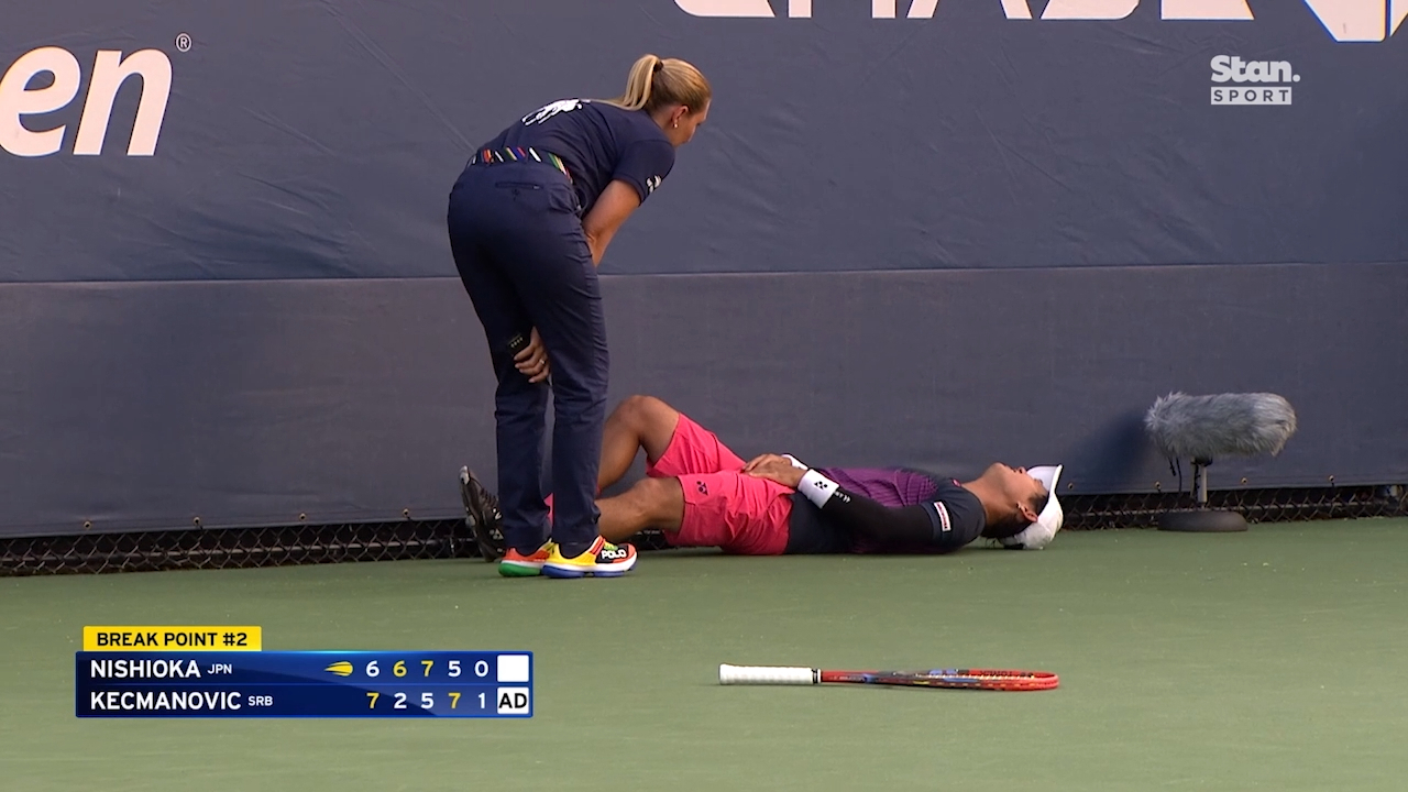Nishioka remained on the ground for several minutes before officially retiring, handing Kecmanovic a 7-6(2), 2-6, 5-7, 7-5, 1-0 victory. There was no official injury report but it's understood the Japanese star suffered cramps.