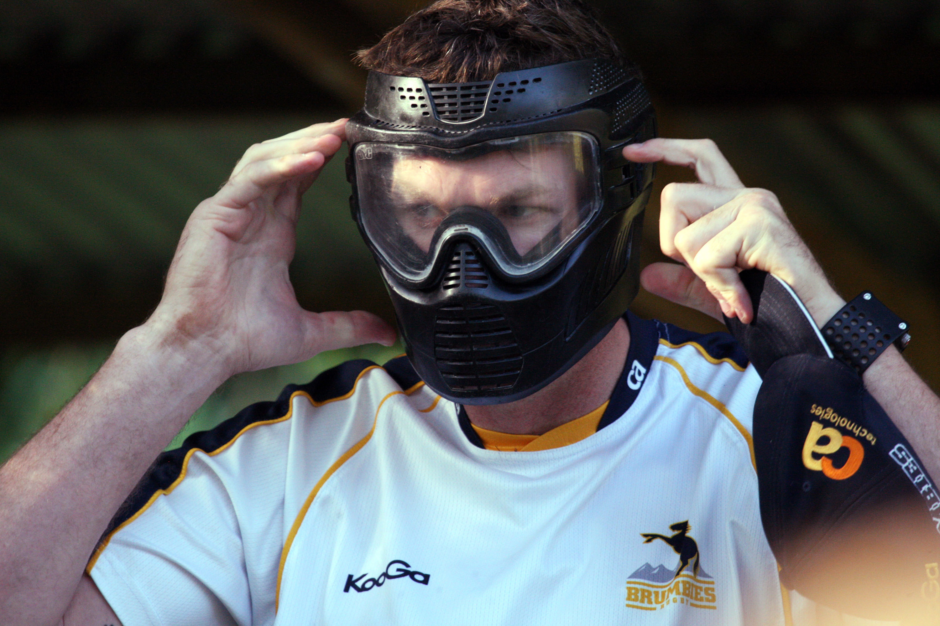 "I'm on tour in South Africa and this is a team building exercise – we were waiting around to play paintball," Harrison explained.