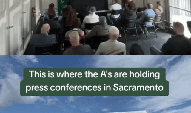Since moving to Sacramento from Oakland, the Athletics are now taking press conferences within a metal shed. March 31, 2025 admin Uncategorized 0 submitted by /u/ThugosaurusFlex_1017 [link] [comments]