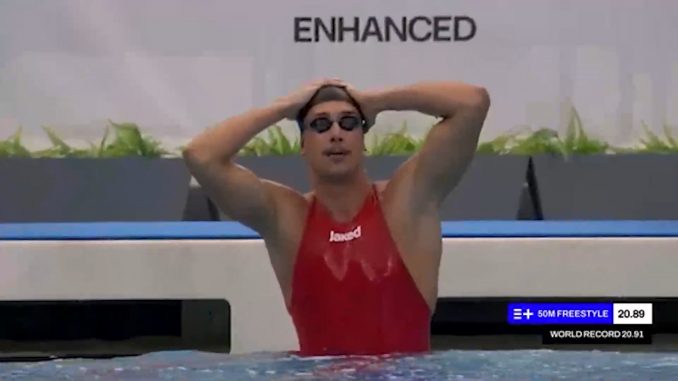 Magnussen failed to break the 50m freestyle world record in his attempt, but Greek swimmer Kristian Gkolomeev did break the mark, with the use of performance-enhancing drugs and a now-banned swimsuit.