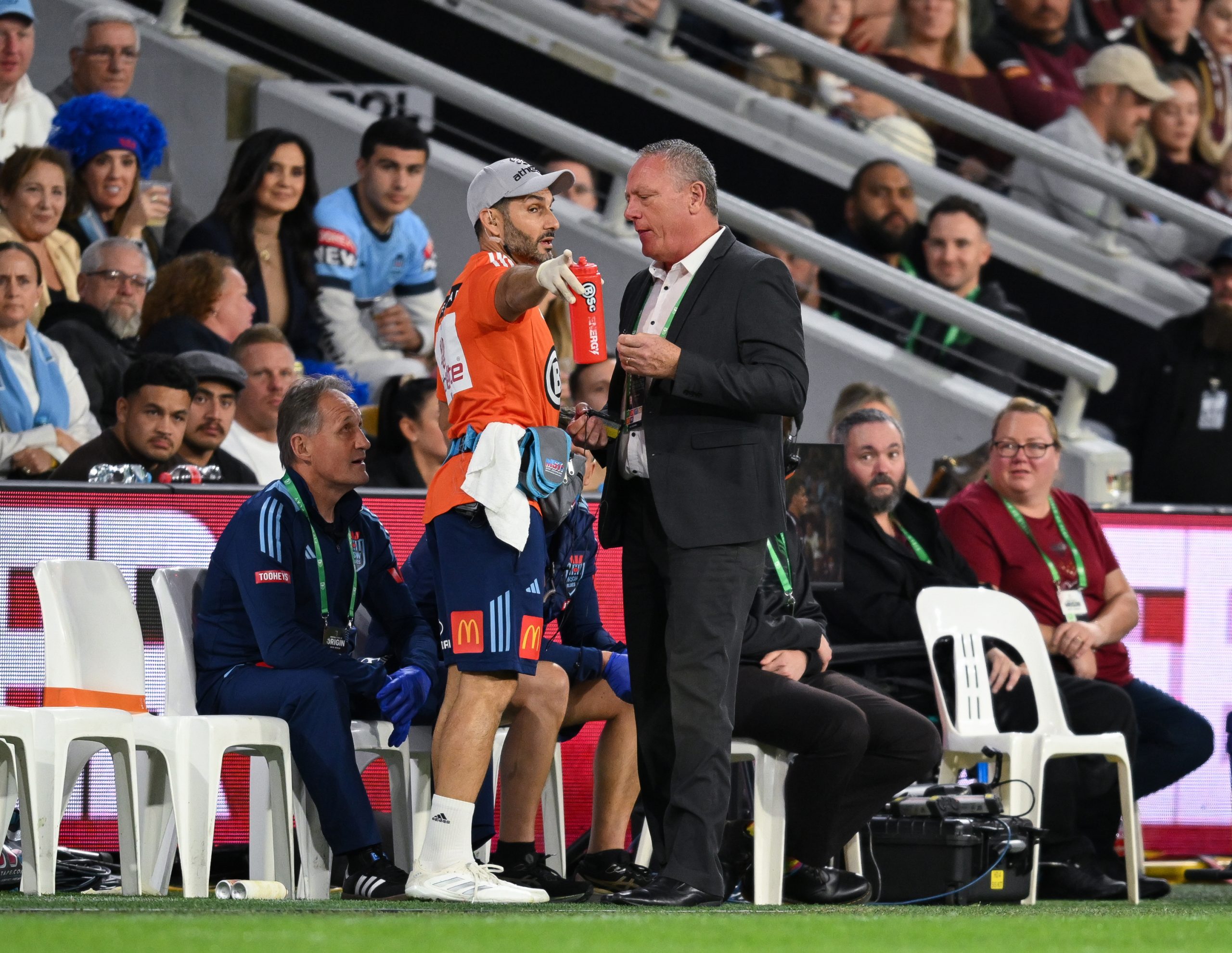 The brother of Robbie Farah, NSW Blues trainer Eddie Farah, drew the ire of referee Ashley Klein during the second half of Origin I for a simple act of gamesmanship.