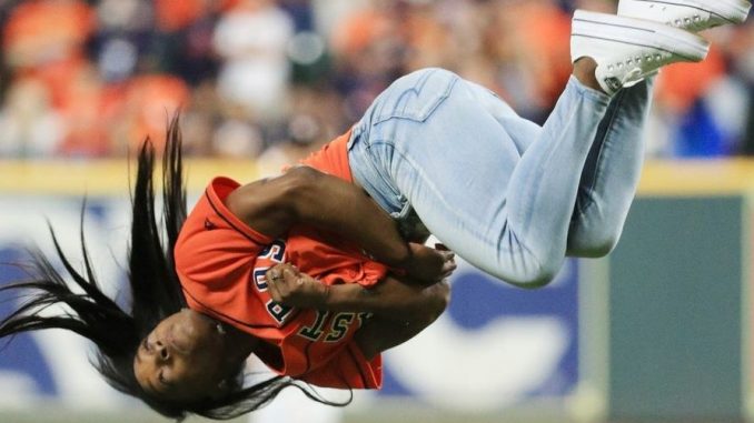Despite Bile’s acrobatic pitch, the hometown Astros weren’t able to dispatch the Washington Nationals, who defeated Houston 12-3.