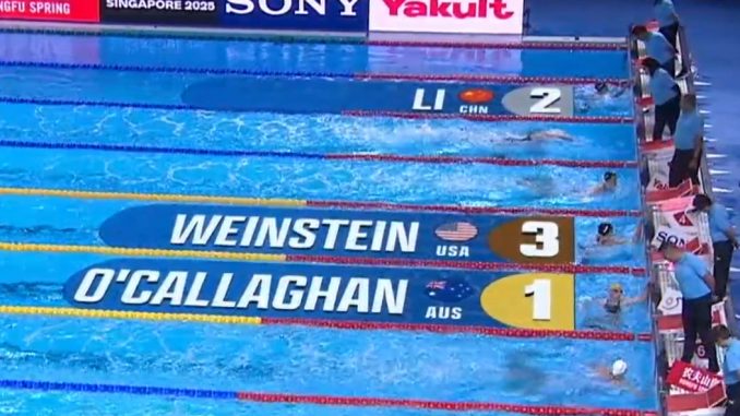 Showing no signs of the suspected food poisoning that struck Dolphins teammate Sam Short earlier on Wednesday, O'Callaghan clinched gold with a time of one minute, 53.48 seconds (1:53.48).