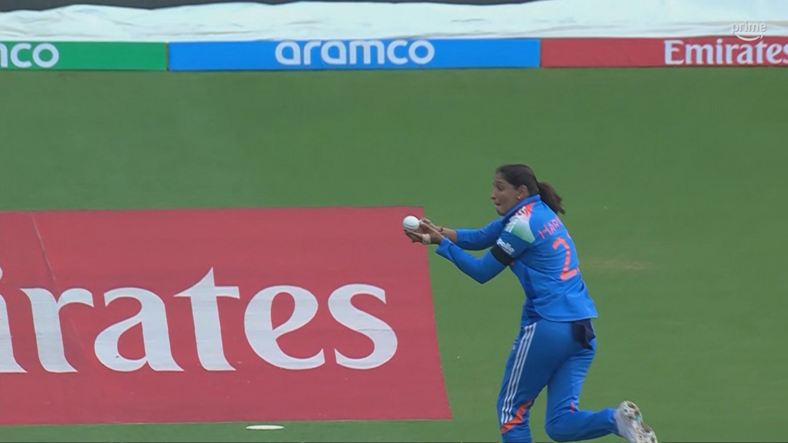 Captain Harmanpreet Kaur was at mid-off and had her body side-on to the ball, which sat perfectly at chest height.