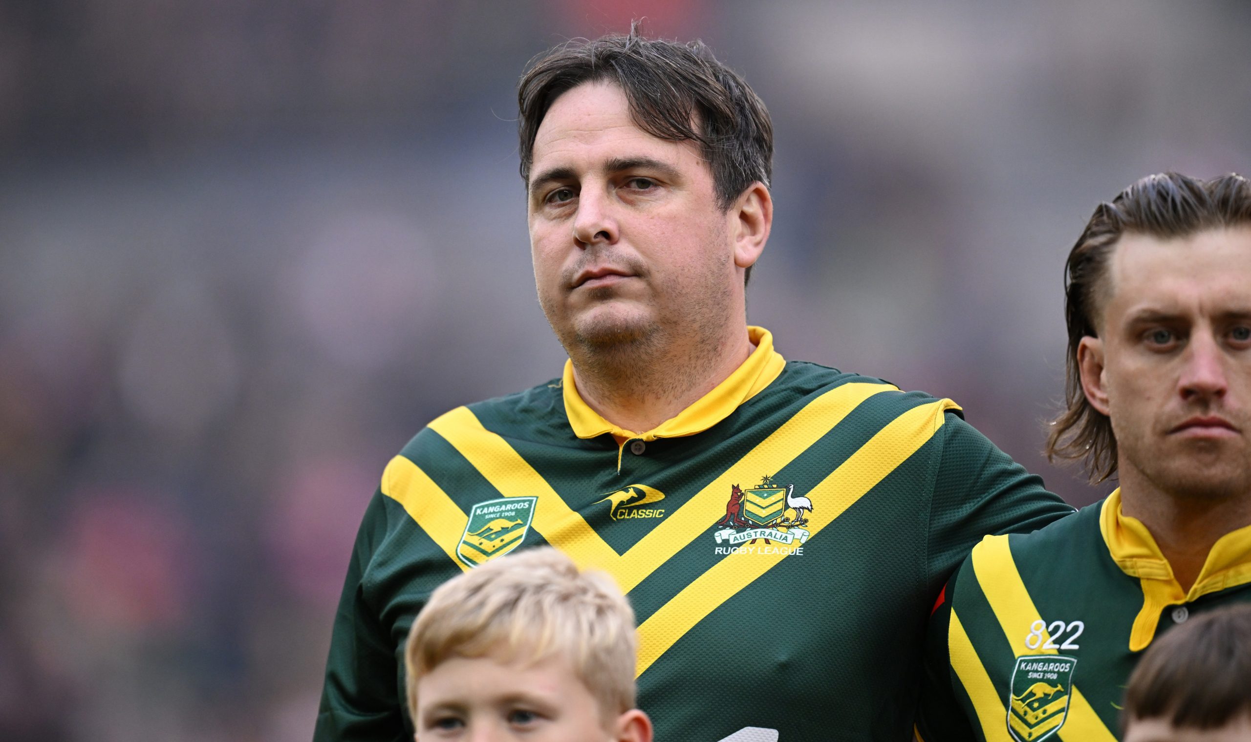 "Some guy tried to get in between me and him and I said 'nah'. Then he asked me again, 'can I stand next to you and hold you'. I said righto mate. Do what you need to do. I just assumed he had some corporate package or some agreement with the Kangaroos that he could jump in for the anthem. Then I realised who it was. It was the guy who does that stuff on the regular. It took me a while to click on but it was pretty funny. He got me.