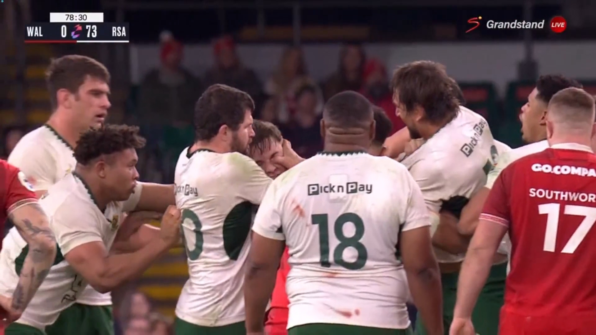 Etzebeth was red-carded at the end of the record 73-0 win in Cardiff after a scuffle with Alex Mann, where he was caught on video with his right thumb in Mann's left eye.