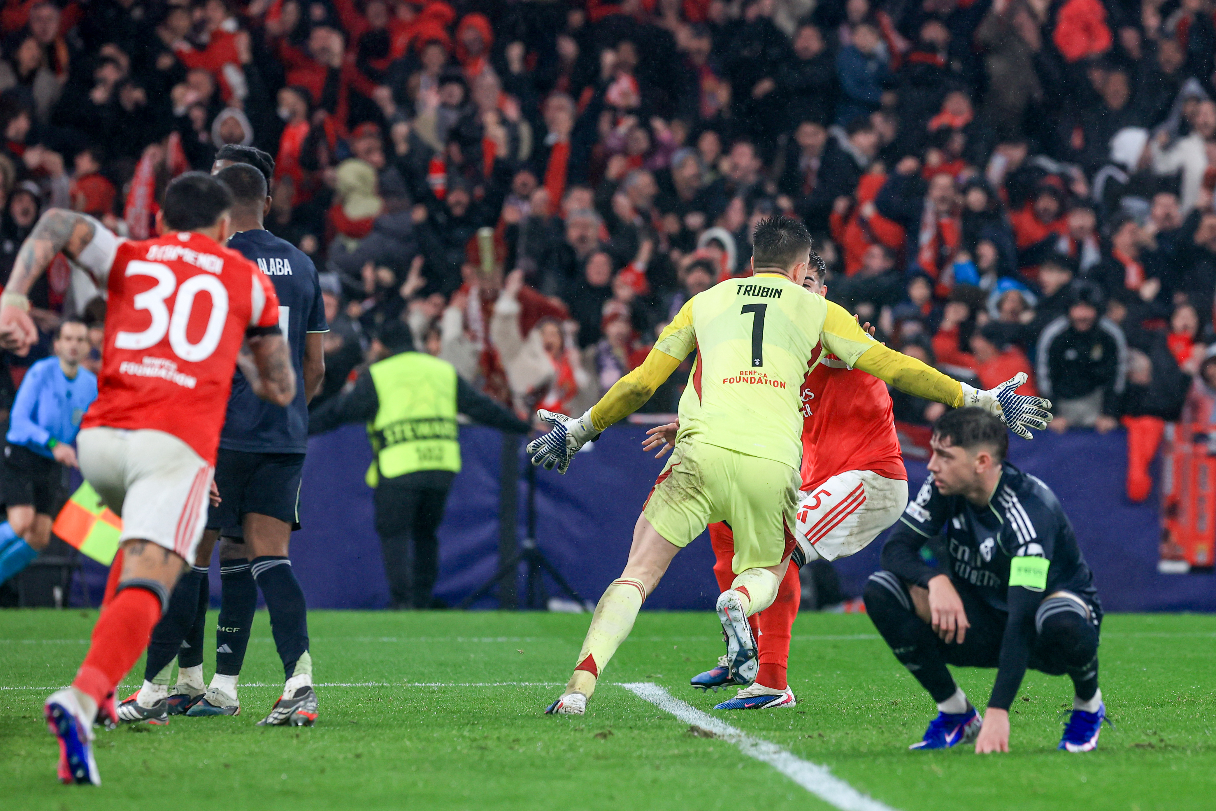 Benfica were heading for elimination despite leading 3-2 with seconds of stoppage time remaining before Trubin met a free kick to score the goal they needed to qualify for the playoff round on goal-difference at the expense of their glamour club opponents.