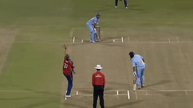 The Cricket equivalent of 6 consecutive Home Runs: Yuvraj Singh destroys Stuart Broad in the 2007 World Cup. After being taunted by another player (Flintoff), Yuvraj Singh hits the maximum possible 6 sixes in a single over. The fastest 50 in international history (12 balls).