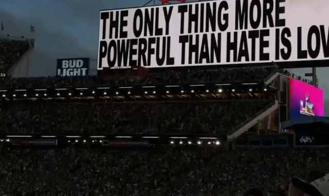 The jumbotron during Bad Bunny’s Super Bowl performance: “The only thing more powerful than hate is love.” February 9, 2026 admin Uncategorized 0 submitted by /u/oklolzzzzs [link] [comments]